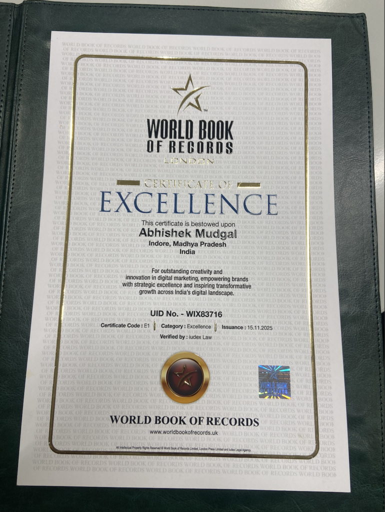 Some moments in life stay with you forever. Being recognised by the World Book of Records in 2025 for my work in digital marketing and creativity felt like one of those moments. It reminded me why I started this journey and fuels me to keep creating value for brands and individuals.